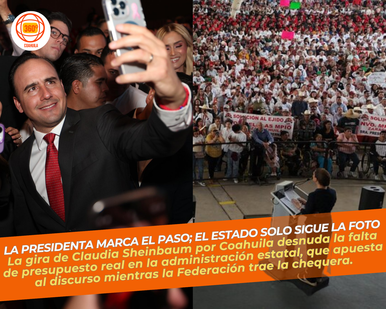 Mientras la Presidenta aterriza con soluciones para el agua en La Laguna y el rescate minero en la Carbonífera, el gobierno estatal se limita a una narrativa de “colaboración” que esconde una parálisis financiera: sin recursos federales, las grandes obras en Coahuila simplemente no se mueven, evidenciando un modelo estatal agotado y dependiente.