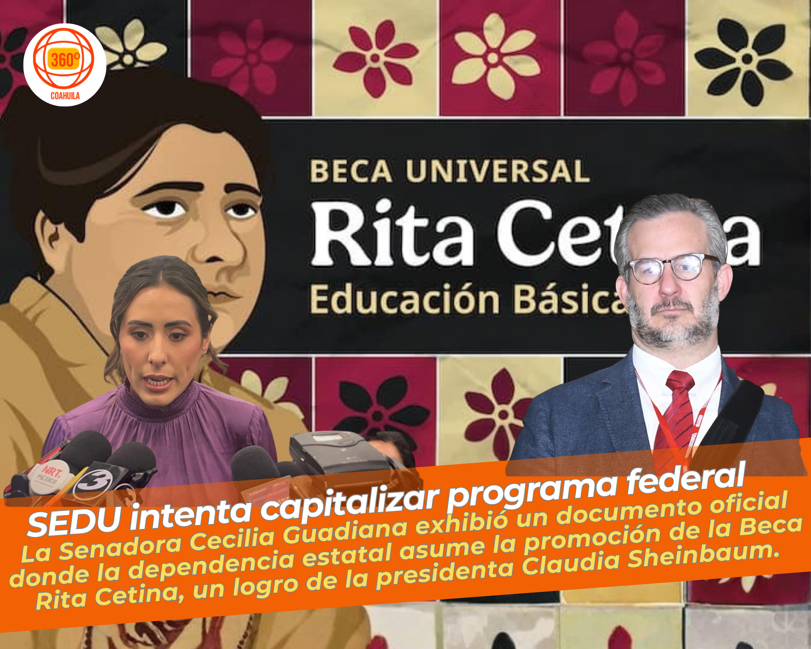 La Secretaría de Educación de Coahuila (SEDU) fue señalada por intentar apropiarse del mérito de la Beca Universal Rita Cetina. La firme y oportuna denuncia de la Senadora Cecilia Guadiana evidenció esta maniobra de comunicación estatal. Este programa fue impulsado directamente por la presidenta Claudia Sheinbaum Pardo.