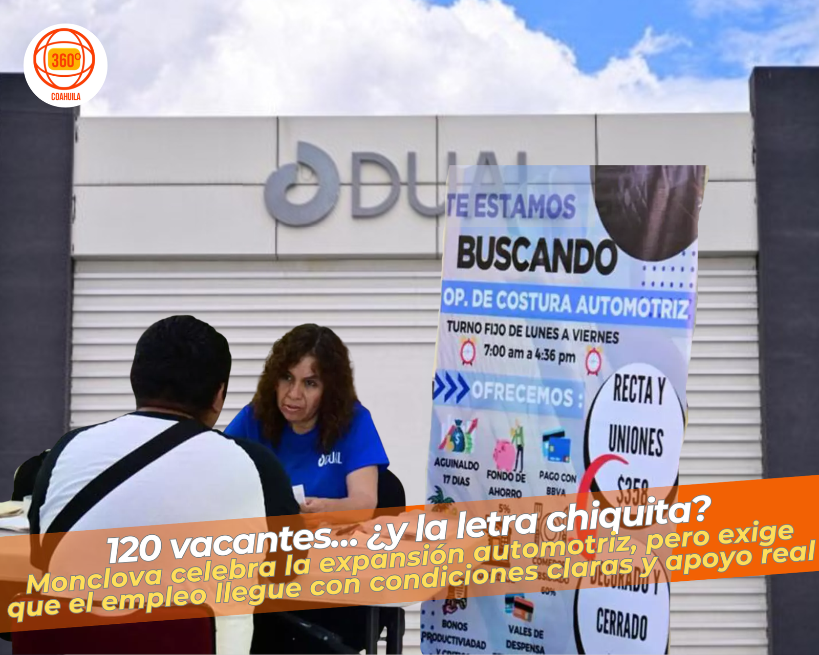 En Monclova se anunciaron más de 120 vacantes por la expansión de Dual Costura Automotriz y el arranque de una nueva línea de producción. Se busca personal para costura (con prioridad a gente con experiencia) y áreas como calidad, corte, materiales, descarga y programación; el requisito mínimo reportado es secundaria y el reclutamiento se realiza de lunes a viernes desde las 7:00 en el Parque Industrial Norte. La polémica está sobre la mesa desde el primer día: el empleo emociona, sí, pero sin transparencia de salarios, turnos y condiciones el anuncio se queda incompleto para quien tiene que decidir rápido.