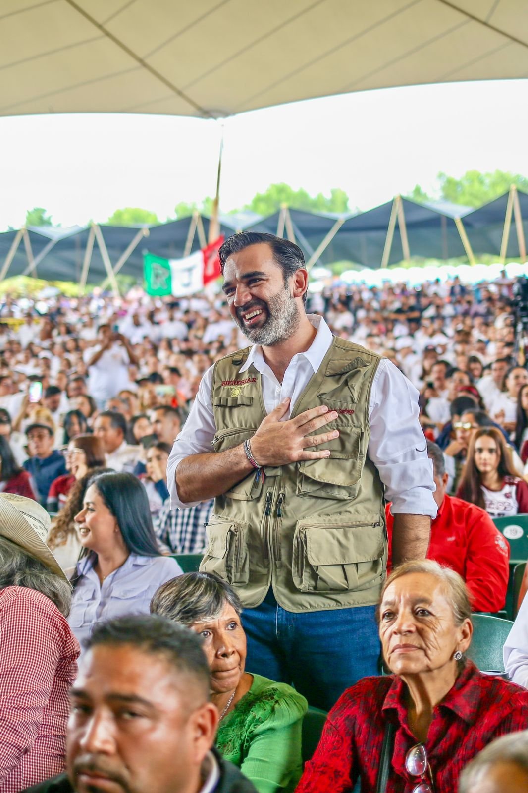 El Delegado de Programas para el Bienestar en Coahuila, Américo Villarreal Santiago, estuvo presente en el evento encabezado por la Presidenta de México, Claudia Sheinbaum Pardo, quien visitó el estado como parte de su gira nacional para presentar su Primer Informe de Gobierno directamente al pueblo.
