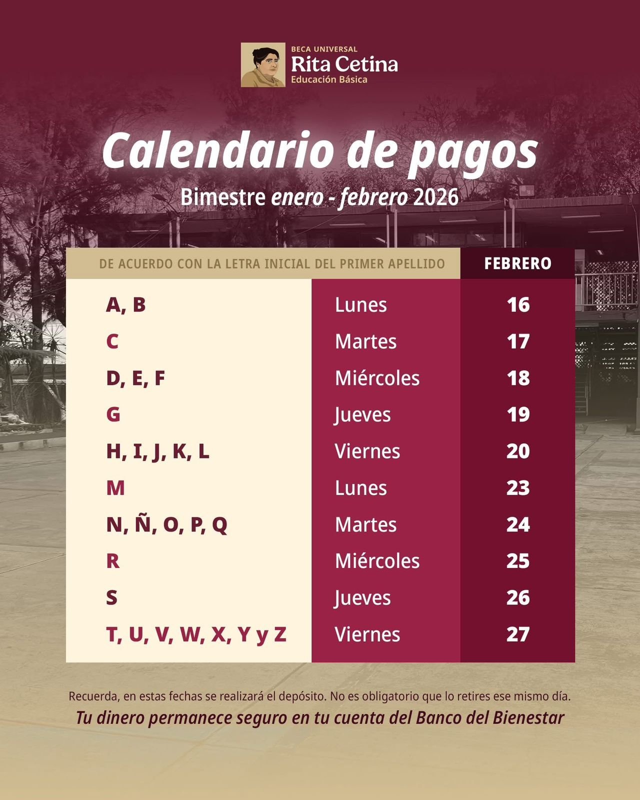 Durante este periodo, todas las familias que ya cuentan con su tarjeta del Banco del Bienestar recibirán el depósito correspondiente. Asimismo, aquellas familias que recogieron su tarjeta durante el mes de enero recibirán un pago triple, correspondiente a los bimestres acumulados.