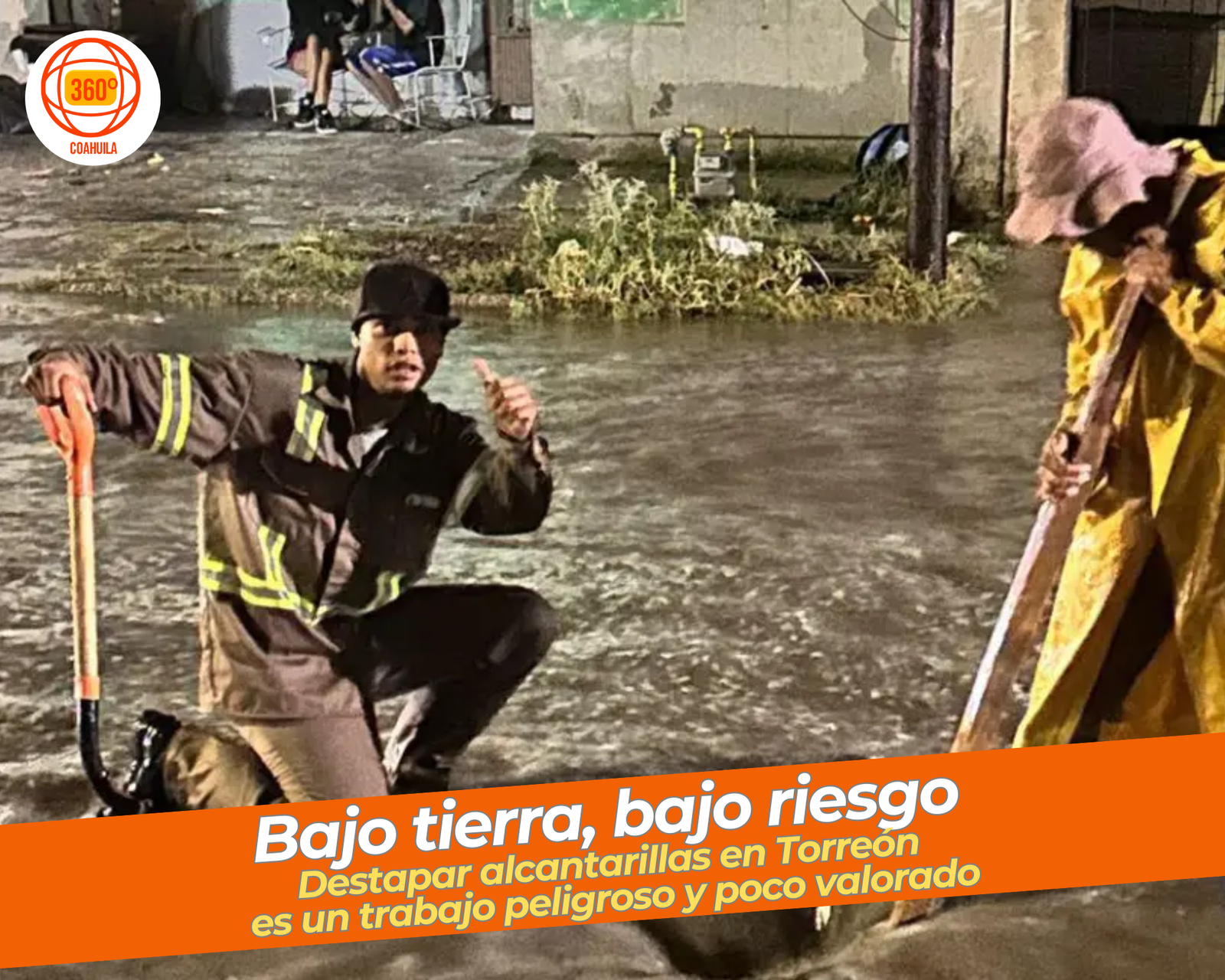 Mientras la ciudad duerme o se resguarda de la lluvia, hay quienes arriesgan todo bajo las calles. Joshua Santa Fe, trabajador del área de Servicios Públicos, revela que destapar alcantarillas en Torreón es una labor tan peligrosa como ingrata: gases, basura y riesgo de accidentes acompañan a diario a quienes mantienen la ciudad a flote.