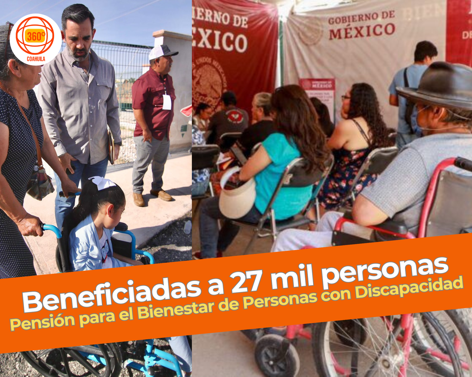 La Secretaría de Bienestar en Coahuila, por medio del delegado Américo Villarreal Santiago, informó que en Coahuila son mas de 27 mil personas Beneficiadas actualmente con el Programa “Pensión para el Bienestar de las Personas con Discapacidad Permanente”, que es uno de los Programas para el Bienestar del Gobierno de México dirigido a apoyar el pleno ejercicio de los derechos y libertades de este grupo de la población otorgando 3 mil 200 pesos bimestrales.