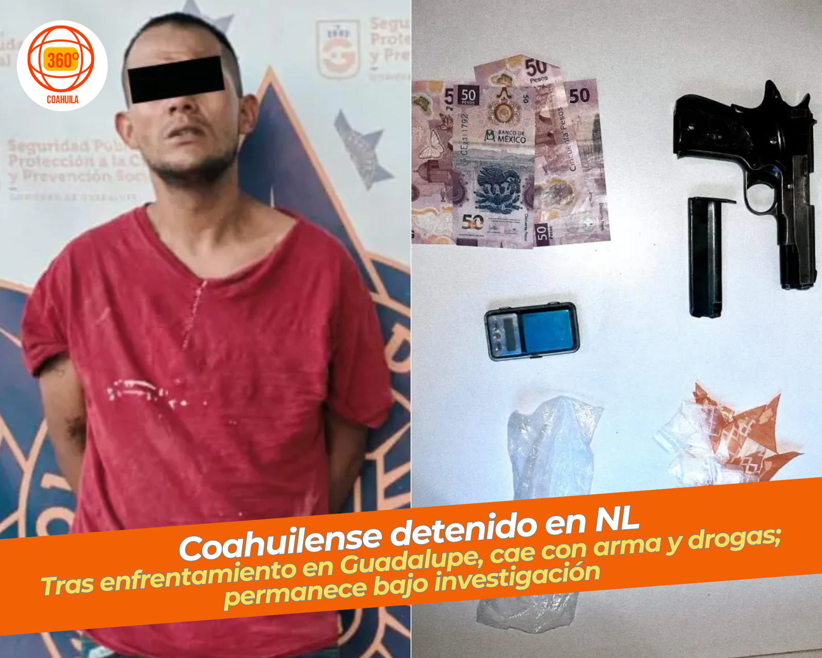 • Coahuilense detenido en NL Tras enfrentamiento en Guadalupe, cae con arma y drogas; permanece bajo investigación