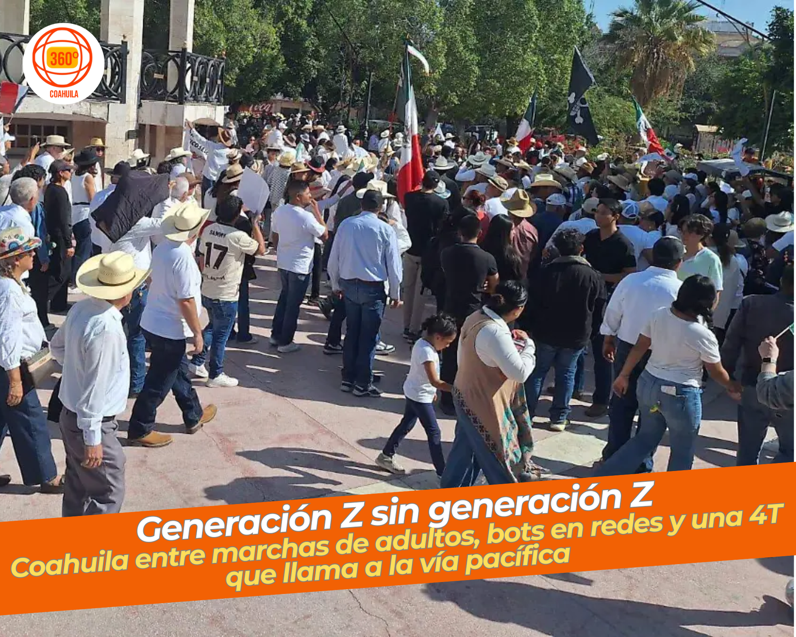 La marcha nacional de la llamada Generación Z México llegó a Coahuila con contingentes en Torreón y Monclova que, más que rostro juvenil, mostraron mayoritariamente caras adultas, consignas contra la presidenta y críticas a la 4T. Mientras en redes se documentan millones de interacciones impulsadas por bots y campañas pagadas, el gobierno federal insiste en que la protesta fue inorgánica y politizada, al tiempo que defiende la movilización pacífica frente a los episodios de violencia registrados en la Ciudad de México.