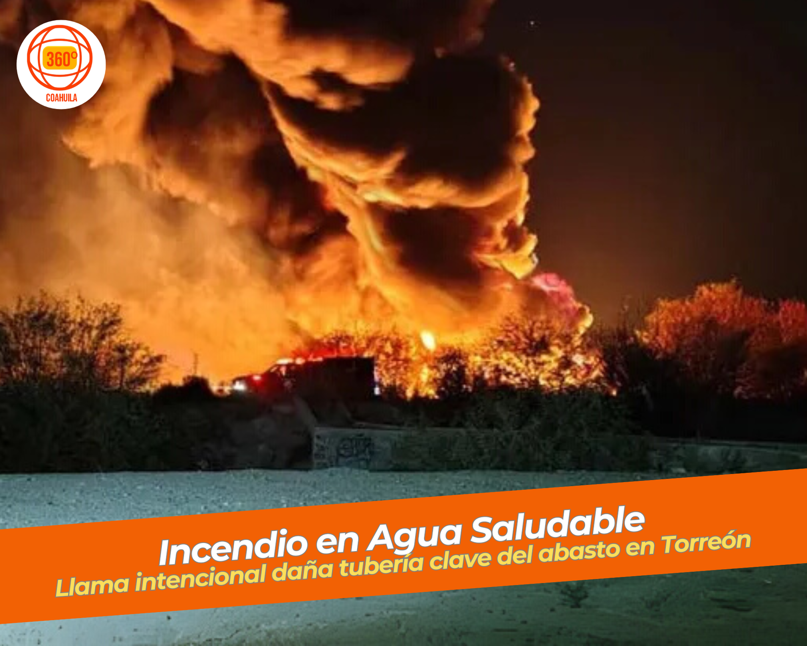 • Incendio en Agua Saludable: Llama intencional daña tubería clave del abasto en Torreón