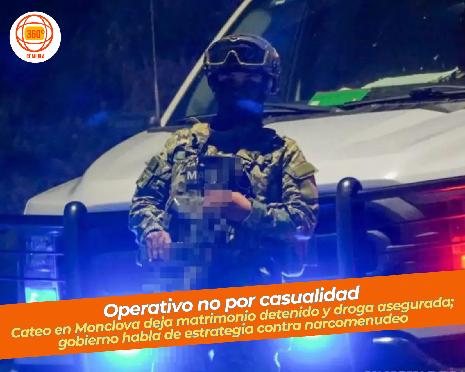 Un operativo conjunto de fuerzas estatales, federales y municipales concluyó con la detención de un matrimonio en Monclova y el aseguramiento de sustancias con características de cristal y marihuana. Ambos quedaron a disposición del Ministerio Público Federal. La intervención se realizó en la colonia Santa Bárbara, donde vecinos habían señalado actividades sospechosas.