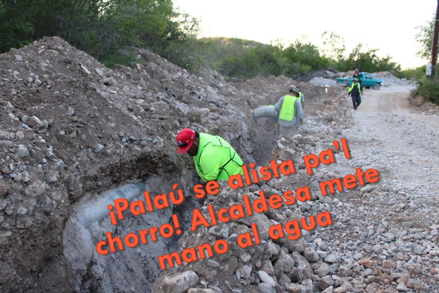 En una visita con sombrero y botines puestos, la presidenta municipal de Múzquiz, Laura Jiménez, llegó a supervisar el avance del cambio de tubería en la comunidad de Palaú. La obra busca que los vecinos dejen de batallar con el desabasto.