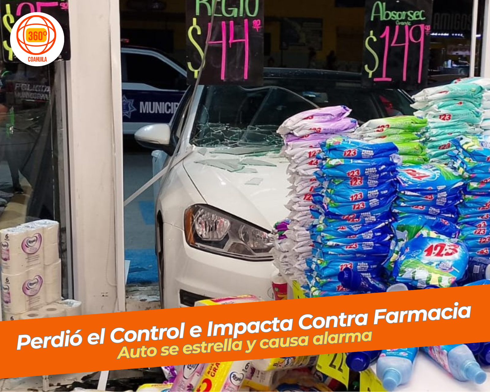 En la colonia Navarro de Torreón, la tranquilidad se rompió cuando un automóvil perdió el control y terminó impactando de frente contra la entrada de una farmacia. El accidente, que generó alarma entre clientes y vecinos, dejó daños materiales considerables y movilizó a las corporaciones de seguridad y paramédicos.