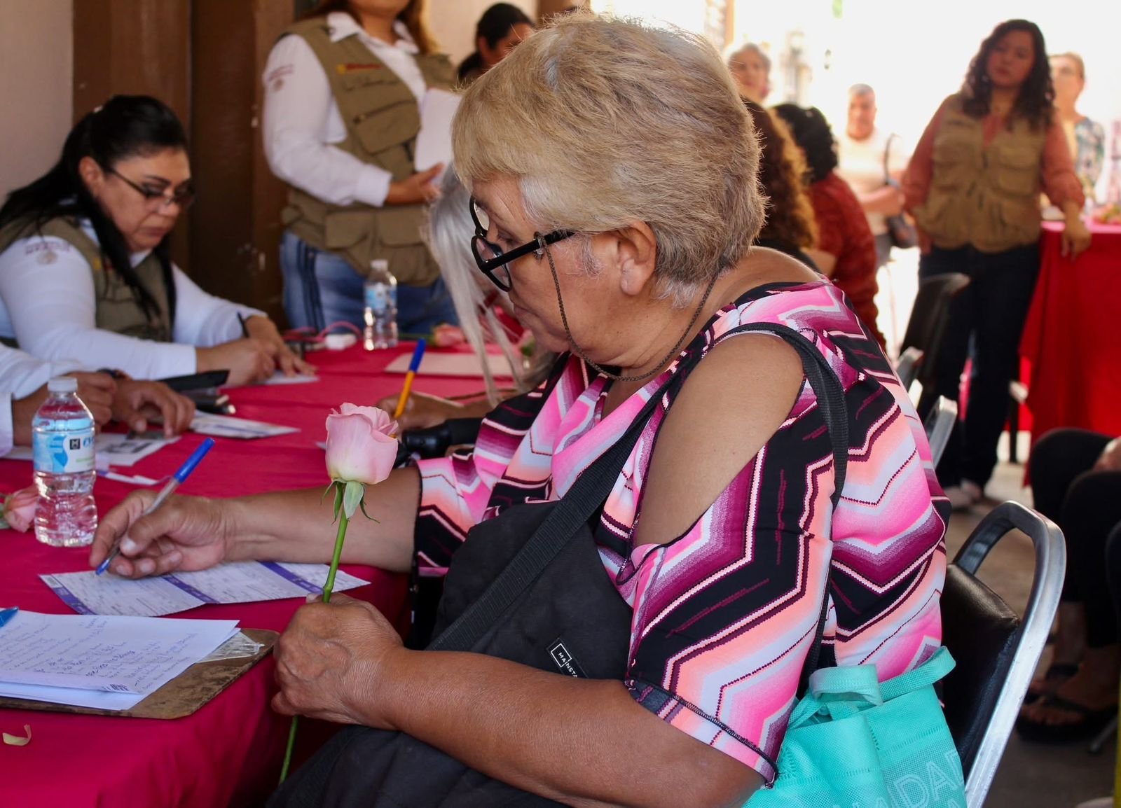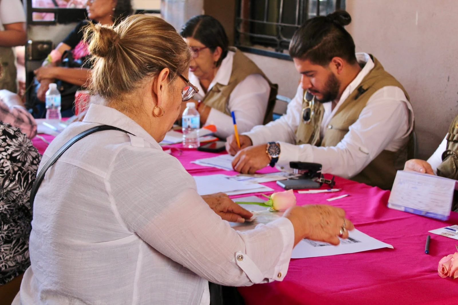 Durante la jornada, Servidores de la Nación realizaron acciones de atención ciudadana y seguimiento a beneficiarias de los programas sociales, brindando información y apoyo a las asistentes. Además, se hizo entrega de tarjetas de la Pensión Mujeres Bienestar y Pensión para el Bienestar de las Personas Adultas Mayores a quienes recientemente concluyeron su proceso de incorporación.