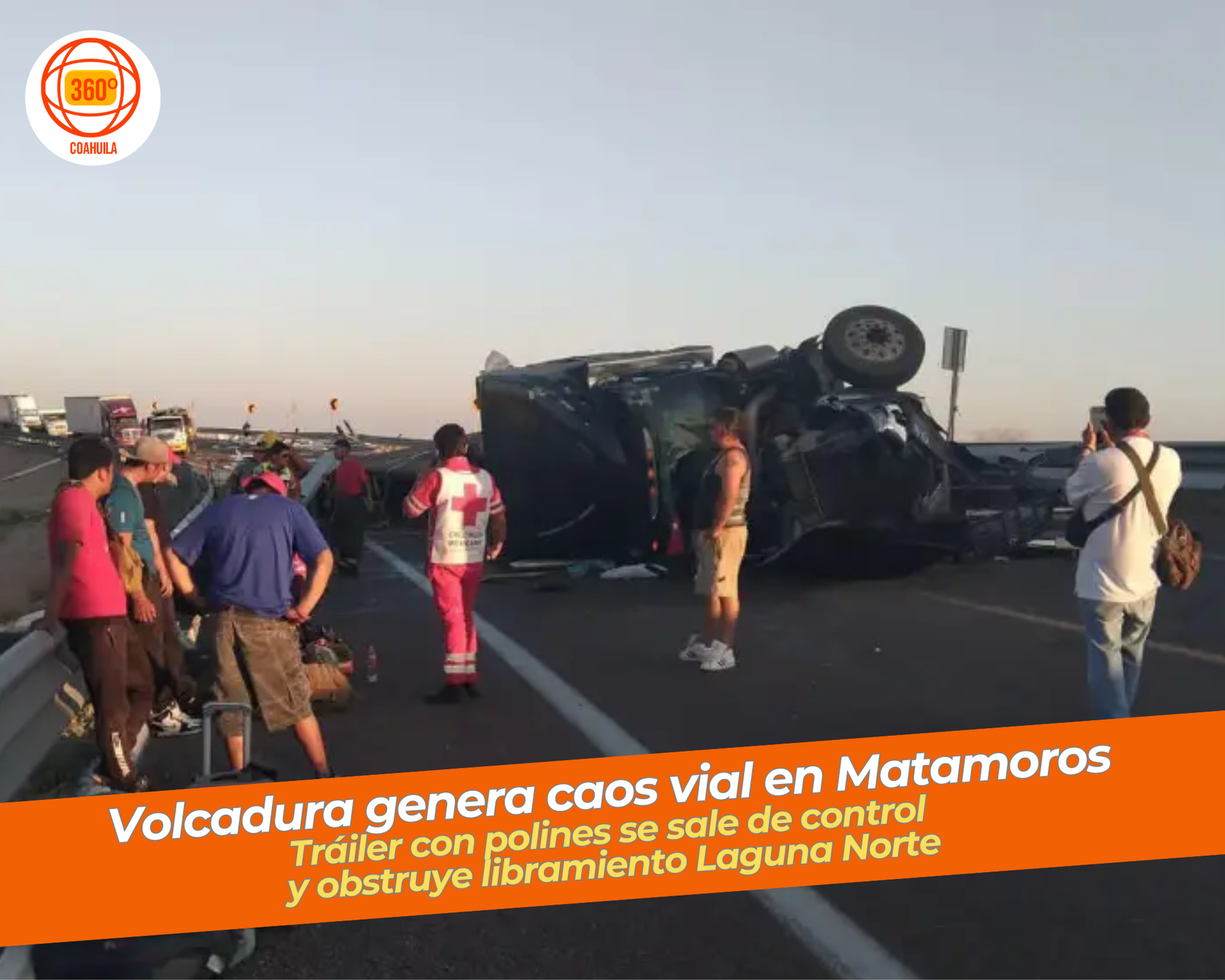 La mañana del martes, un tráiler cargado con polines de aluminio volcó en el kilómetro 30 + 900 del libramiento Laguna Norte, en territorio del municipio de Matamoros, provocando severos bloqueos y largas filas vehiculares. Varias personas resultaron lesionadas y la vialidad quedó interrumpida por horas mientras cuerpos de auxilio atendían el siniestro y se retiraba la carga. Este tipo de incidentes impacta en Coahuila porque desnuda la fragilidad de la infraestructura vial frente al crecimiento del parque automotor y la carga pesada en rutas intermunicipales.